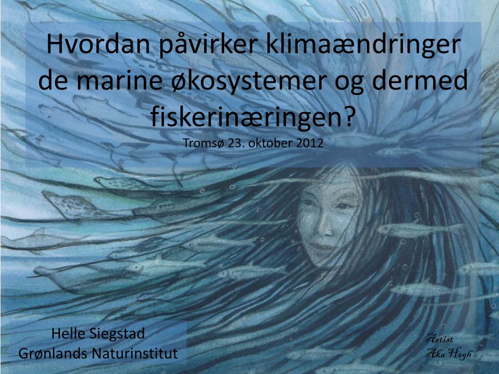 Hvordan påvirker klimaændringer de marine økosystemer og dermed fiskerinæringen? Tromsø 23. oktober 2012 Helle Siegstad Grønlands Naturinstitut Artist Aka Høgh