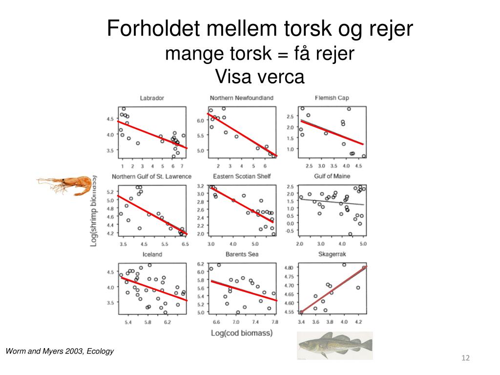 Forholdet mellem torsk og rejer mange torsk = få rejer Visa verca Worm and Myers 2003, Ecology