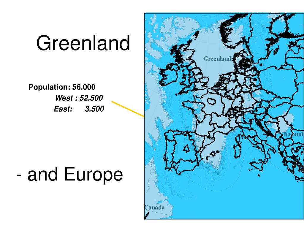 Greenland Population: 56.000 West : 52.500 East: 3.500 - and Europe
