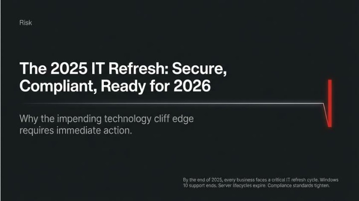 By the end of 2025, every business will face a critical IT refresh cycle. Windows 10 support is coming to an end, many servers and storage systems are due for replacement, and compliance standards around cybersecurity continue to tighten. These arenu2019t minor upgrades u2014 they are business-critical projects that will shape your ability to stay secure, compliant, and competitive in 2026 and beyond.