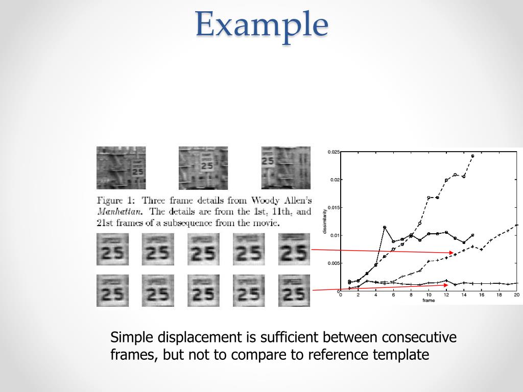 Example Simple displacement is sufficient between consecutive frames, but not to compare to reference template