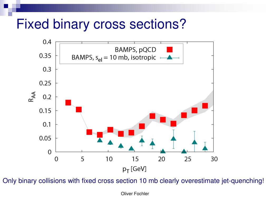 Fixed binary cross sections? Only binary collisions with fixed cross section 10 mb clearly overestimate jet-quenching! Oliver Fochler