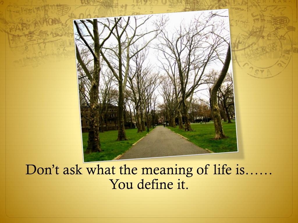 Don’t ask what the meaning of life is…… You define it.