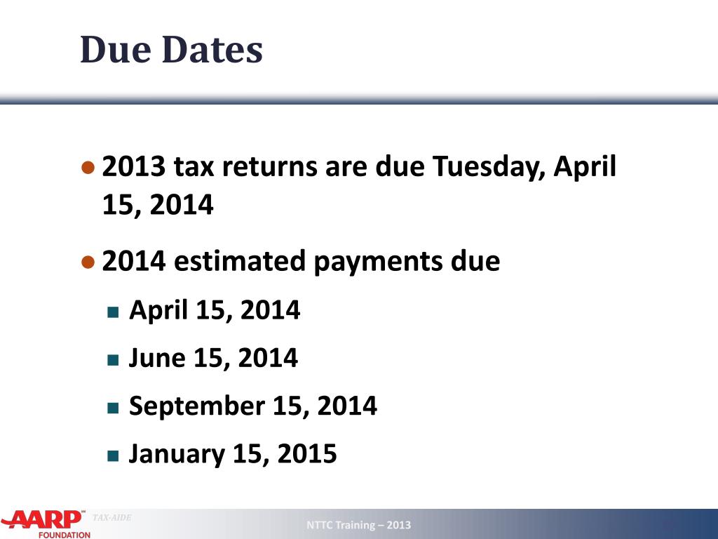 Federal Tax Law Changes 2013 • New provisions • Indexing • Extenders • Form change • Due Dates NTTC Training – 2013 2