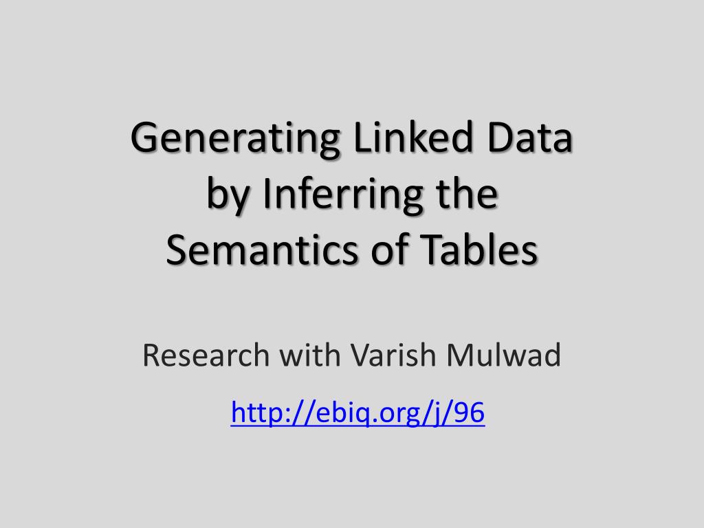 Generating Linked Databy Inferring theSemantics of TablesResearch with Varish Mulwad http://ebiq.org/j/96