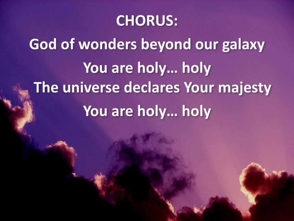 CHORUS: God of wonders beyond our galaxy You are holy… holy Precious Lord, reveal Your heart to me Father, holy… holy The universe declares Your majesty You are holy… holy
