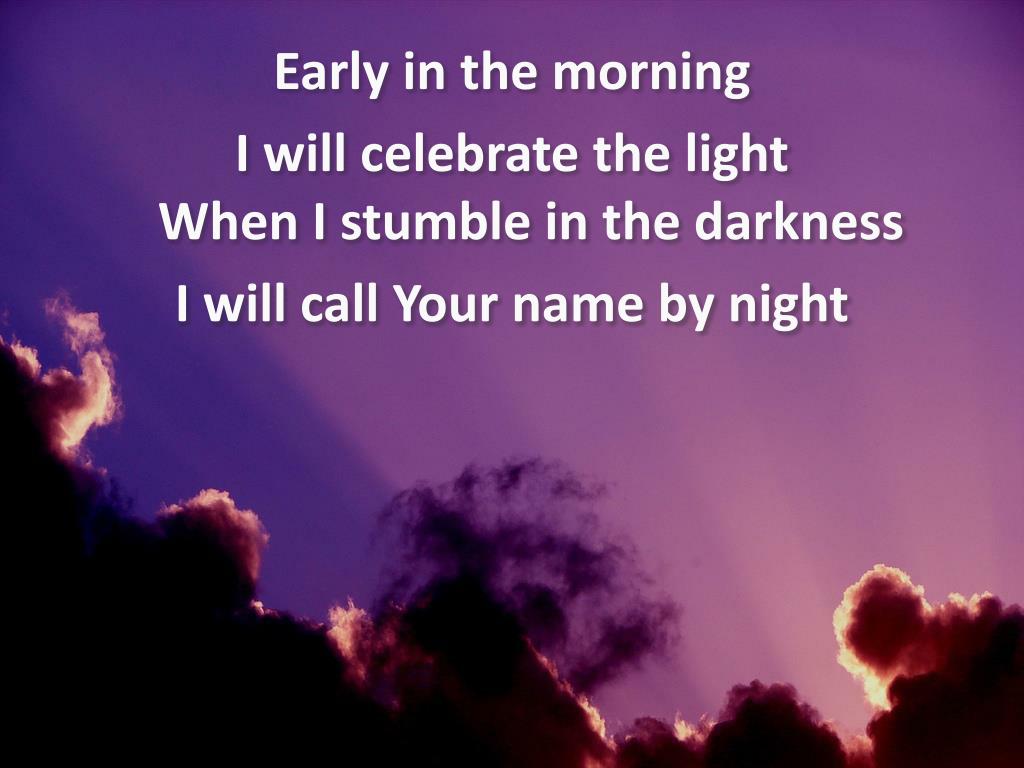 Early in the morning I will celebrate the lightWhen I stumble in the darkness I will call Your name by night