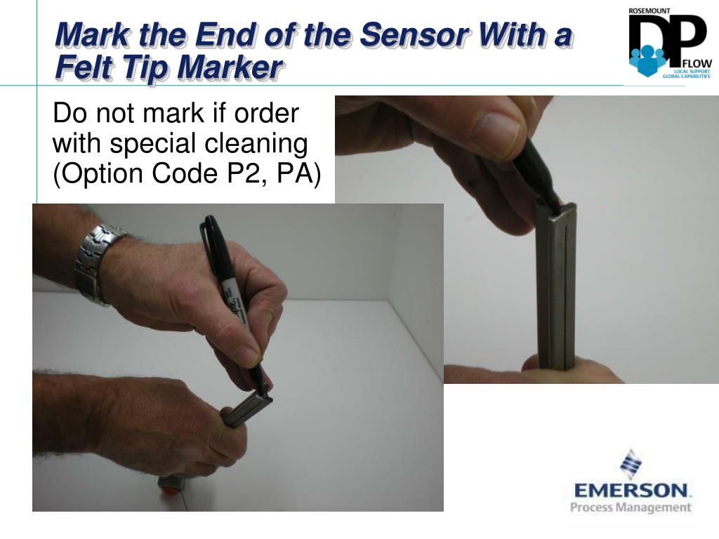 Mark the End of the Sensor With a Felt Tip Marker Do not mark if order with special cleaning (Option Code P2, PA)
