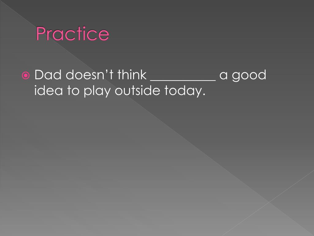 Practice • Dad doesn’t think __________ a good idea to play outside today.