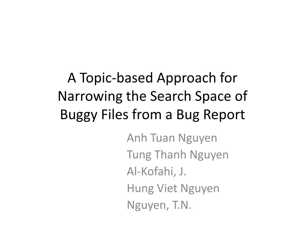 A Topic-based Approach forNarrowing the Search SpaceofBuggyFiles from a Bug Report Anh Tuan Nguyen Tung Thanh Nguyen Al-Kofahi, J. Hung Viet Nguyen Nguyen, T.N.