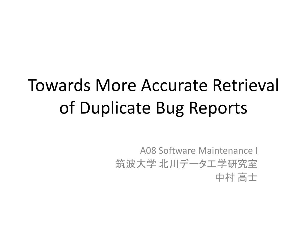 Towards More Accurate Retrieval of Duplicate Bug Reports A08 Software Maintenance I 筑波大学 北川データ工学研究室 中村 高士