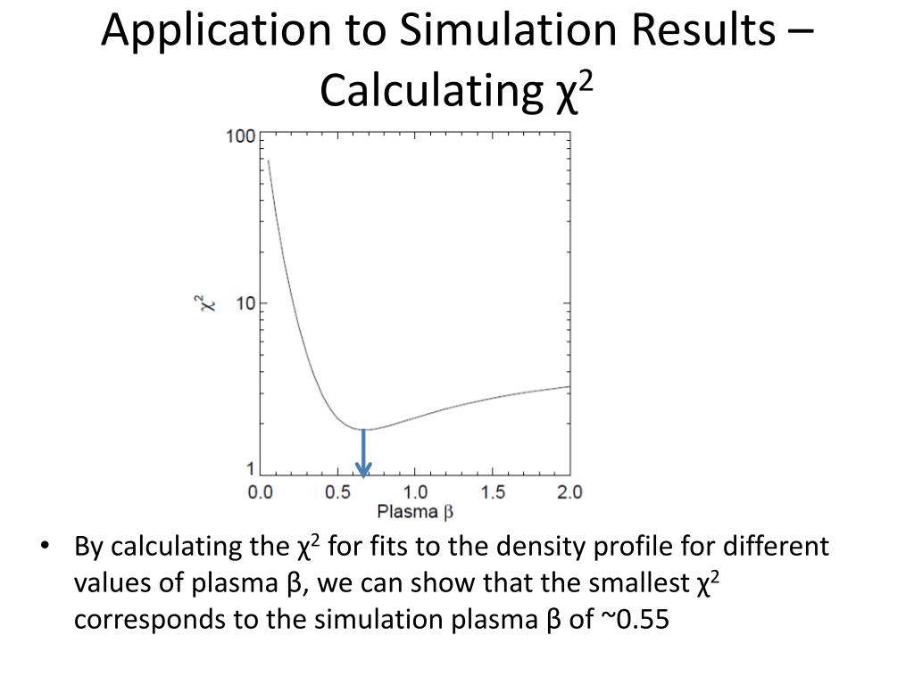 Application to Simulation Results – Calculating χ2 • By calculating the χ2 for fits to the density profile for different values of plasma β, we can show that the smallest χ2 corresponds to the simulation plasma β of ~0.55