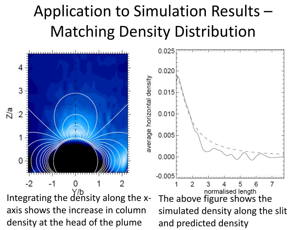 Application to Simulation Results – Matching Density Distribution Integrating the density along the x-axis shows the increase in column density at the head of the plume The above figure shows the simulated density along the slit and predicted density
