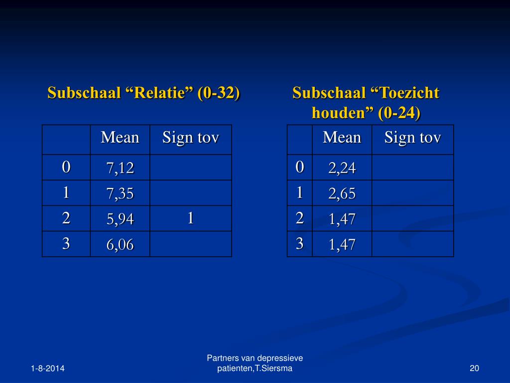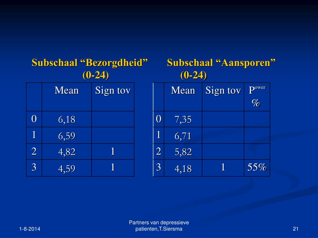 Totale BES (0-108) Partners van depressieve patienten,T.Siersma