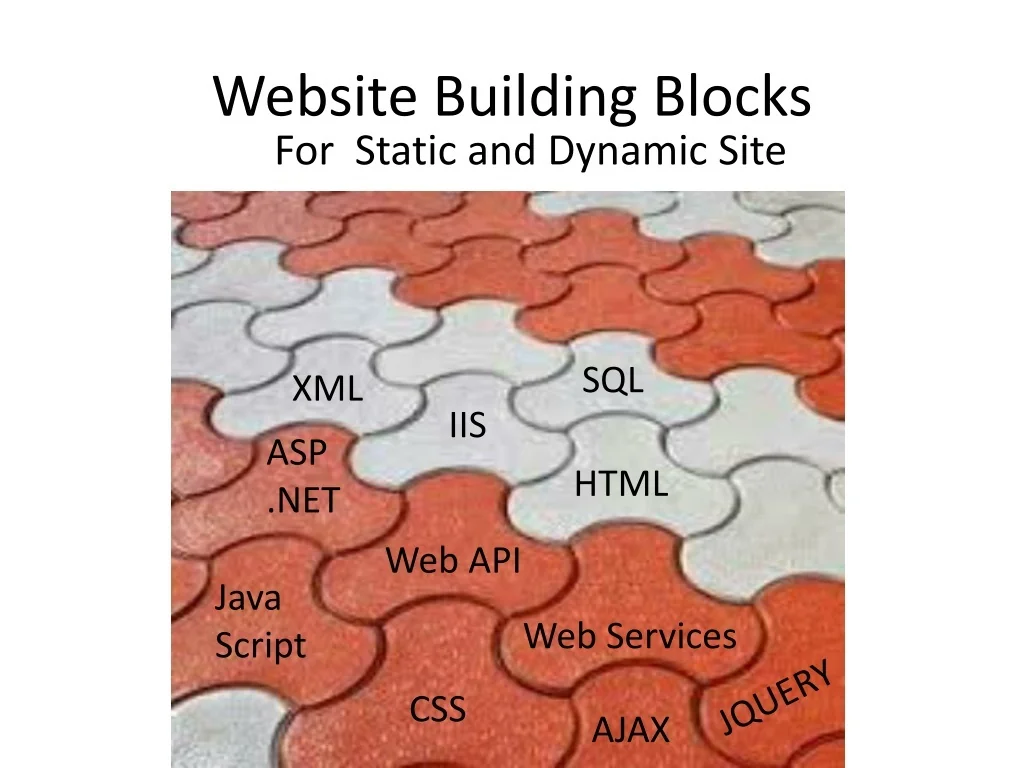 Website Building Blocks For Static and Dynamic Site SQL XML IIS ASP .NET HTML Web API Java Script Web Services CSS AJAX