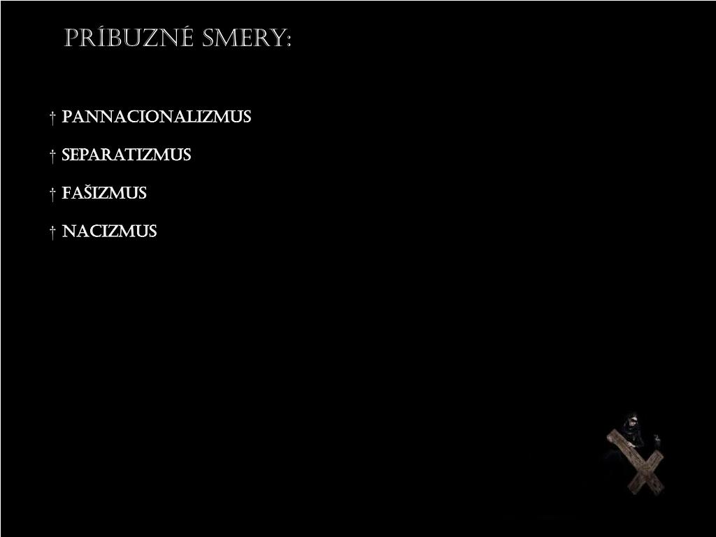 Príbuzné smery: † Pannacionalizmus † Separatizmus † Fašizmus † Nacizmus