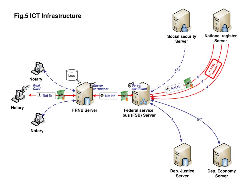National register Server Social security Server Notary Notary FRNB Server Federal service bus (FSB) Server Notary Dep. Justice Server Dep. Economy Server Fig.5 ICT Infrastructure