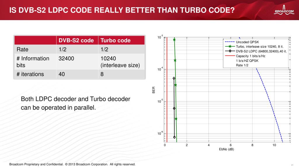 Is DVB-S2 LDPC code really better than turbo code? Both LDPC decoder and Turbo decoder can be operated in parallel.