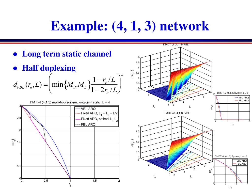 Asymptotic DMDT: long-term static channel Performance limited by the weakest link • Fixed ARQ Allocation • Adaptive FBL • Adaptive VBL: close form solution in some special cases Optimal ARQ equalizes link performance Adaptive ARQ: this equalizing optimization is done automatically