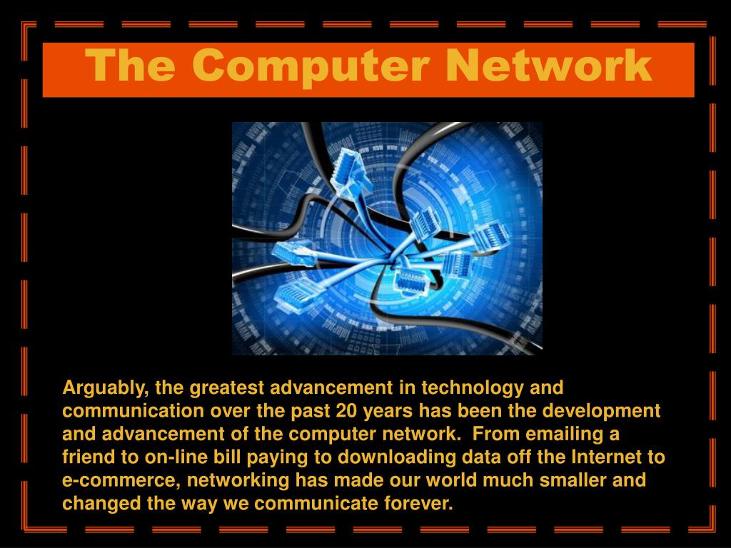 The Computer Network Arguably, the greatest advancement in technology and communication over the past 20 years has been the development and advancement of the computer network. From emailing a friend to on-line bill paying to downloading data off the Internet to e-commerce, networking has made our world much smaller and changed the way we communicate forever.