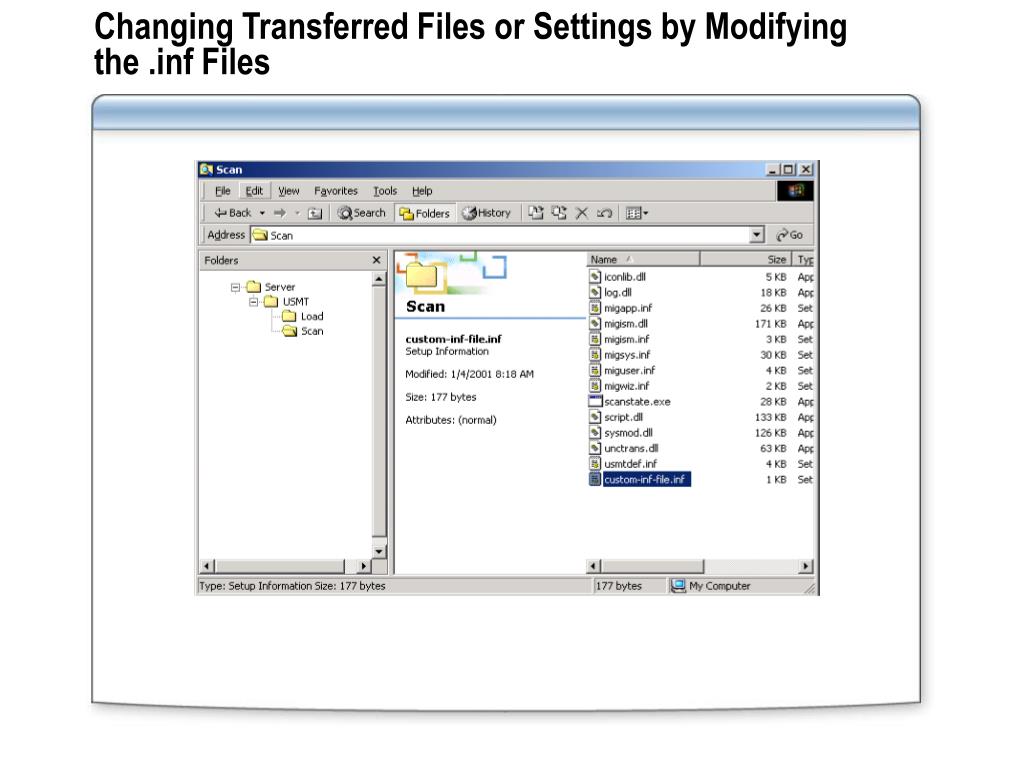 Changing Transferred Files or Settings by Modifying the .inf Files