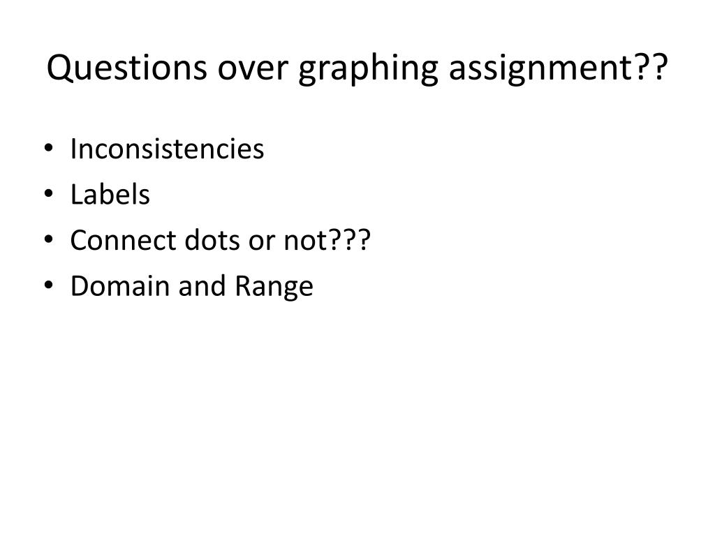 Questions over graphing assignment?? • Inconsistencies • Labels • Connect dots or not??? • Domain and Range