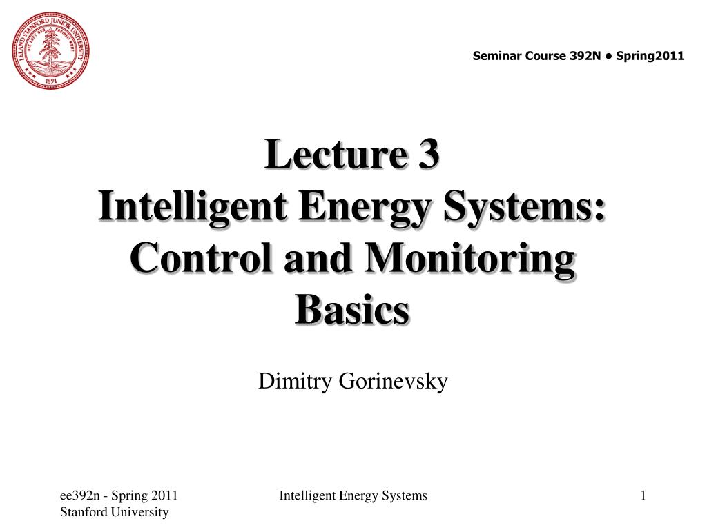 Seminar Course 392N ● Spring2011 Lecture 3 Intelligent Energy Systems:Control and MonitoringBasics Dimitry Gorinevsky Intelligent Energy Systems