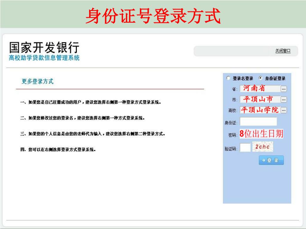 身份证号登录方式 河南省 平顶山市 平顶山学院