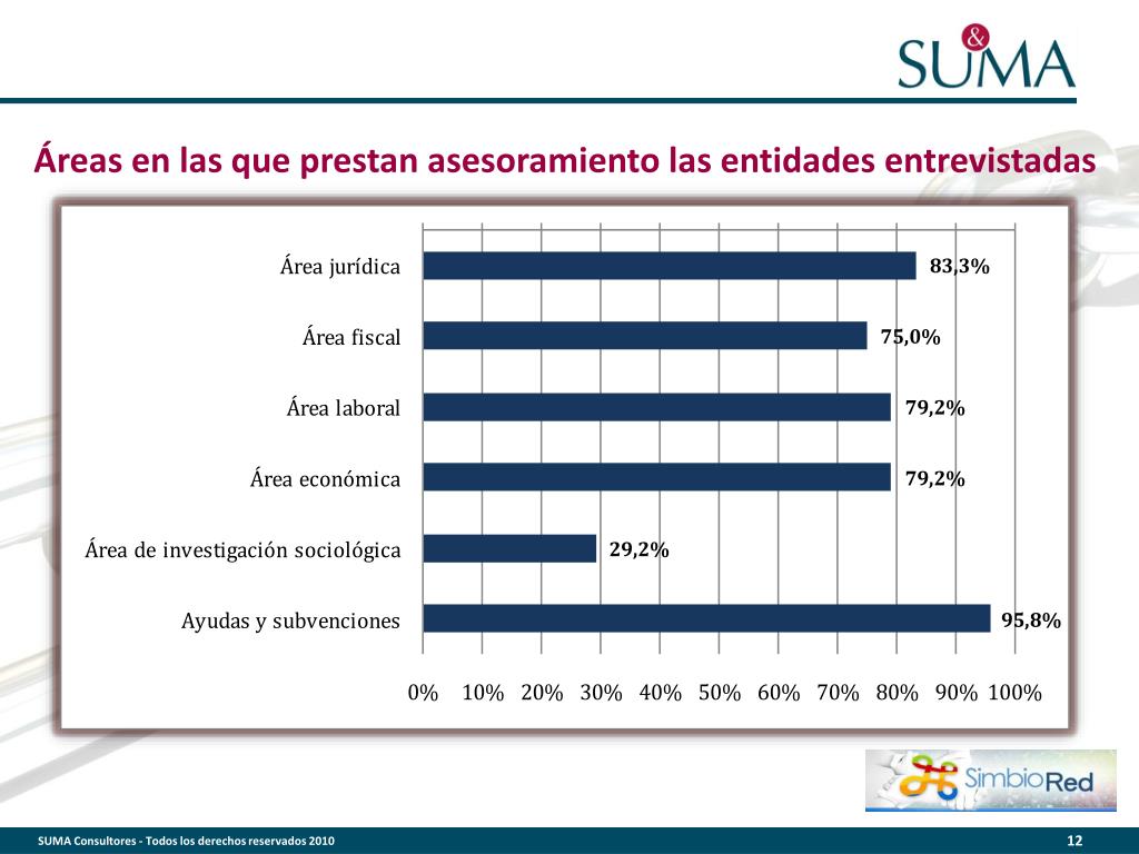 Áreas en las que prestan asesoramiento las entidades entrevistadas