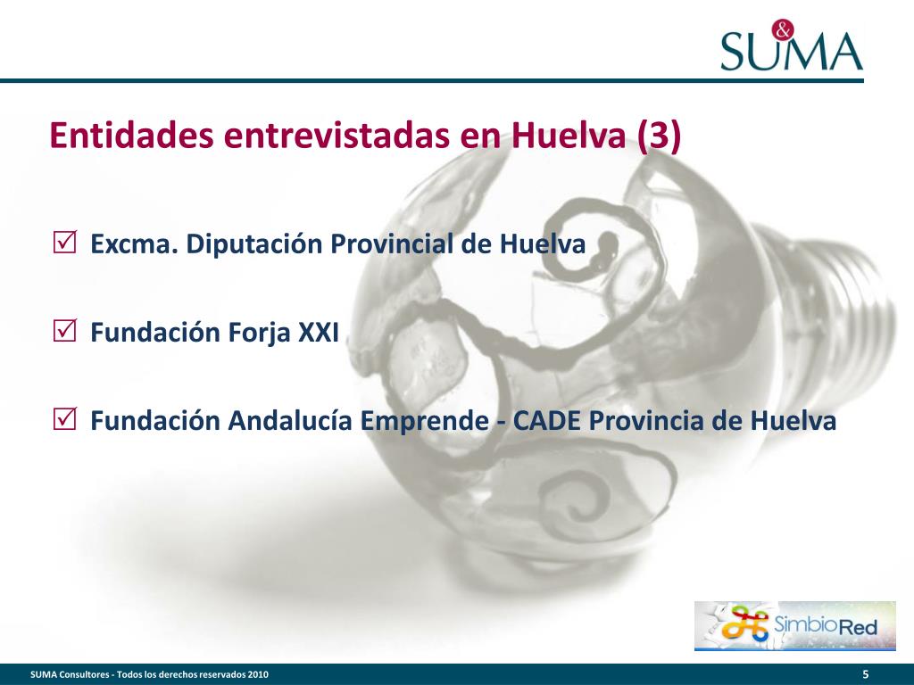 Entidades entrevistadas en Huelva (3) • Excma. Diputación Provincial de Huelva • Fundación Forja XXI • Fundación Andalucía Emprende - CADE Provincia de Huelva