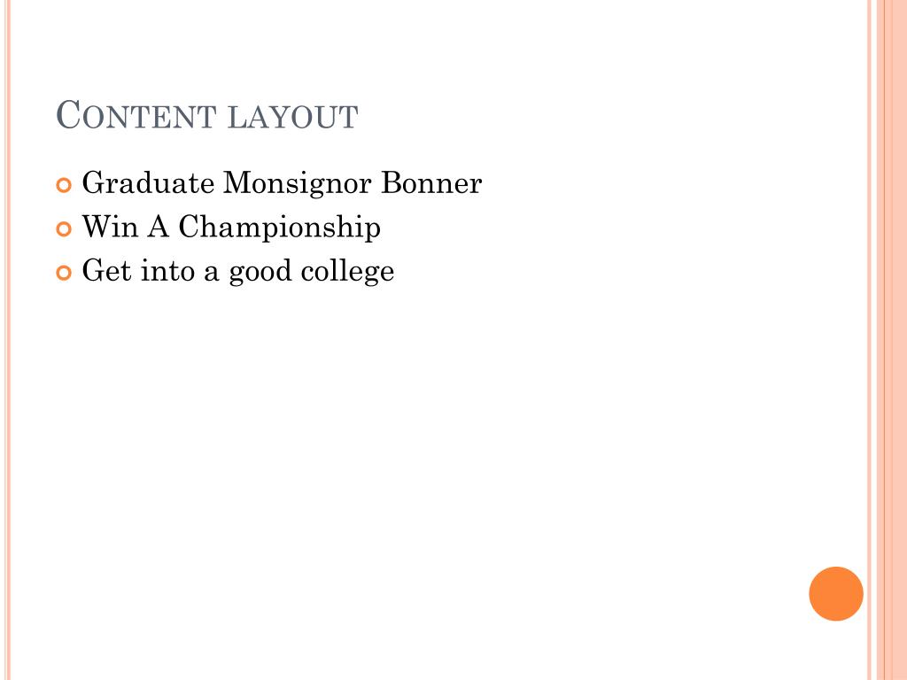 Content layout • Graduate Monsignor Bonner • Win A Championship • Get into a good college