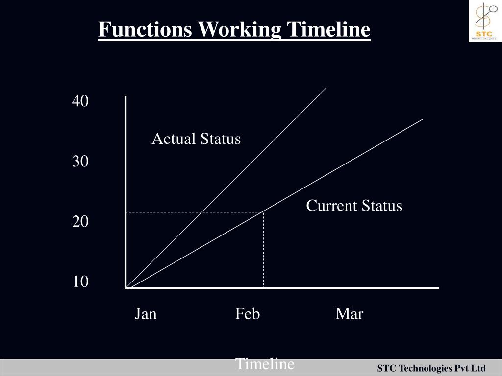 Functions Working Timeline 40 30 20 10 Actual Status Current Status Jan Feb Mar Timeline