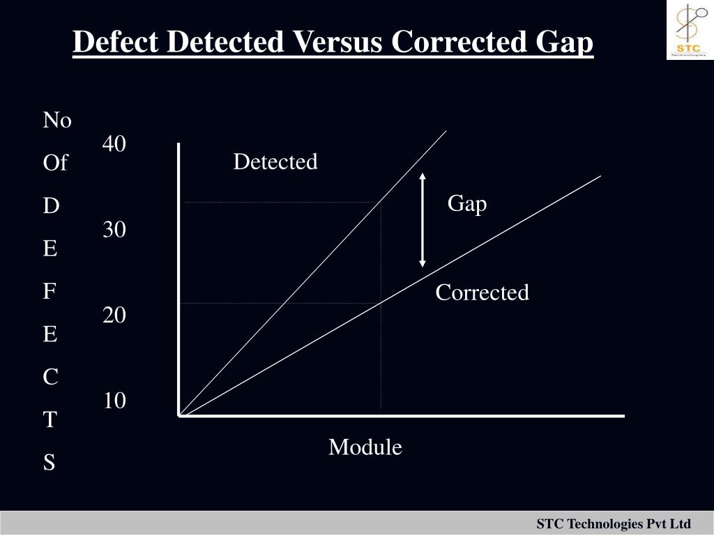Defect Detected Versus Corrected Gap No Of D E F E C T S 40 30 20 10 Detected Gap Corrected Module