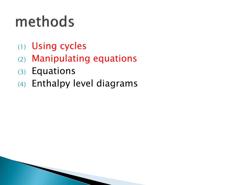 methods • Using cycles • Manipulating equations • Equations • Enthalpy level diagrams