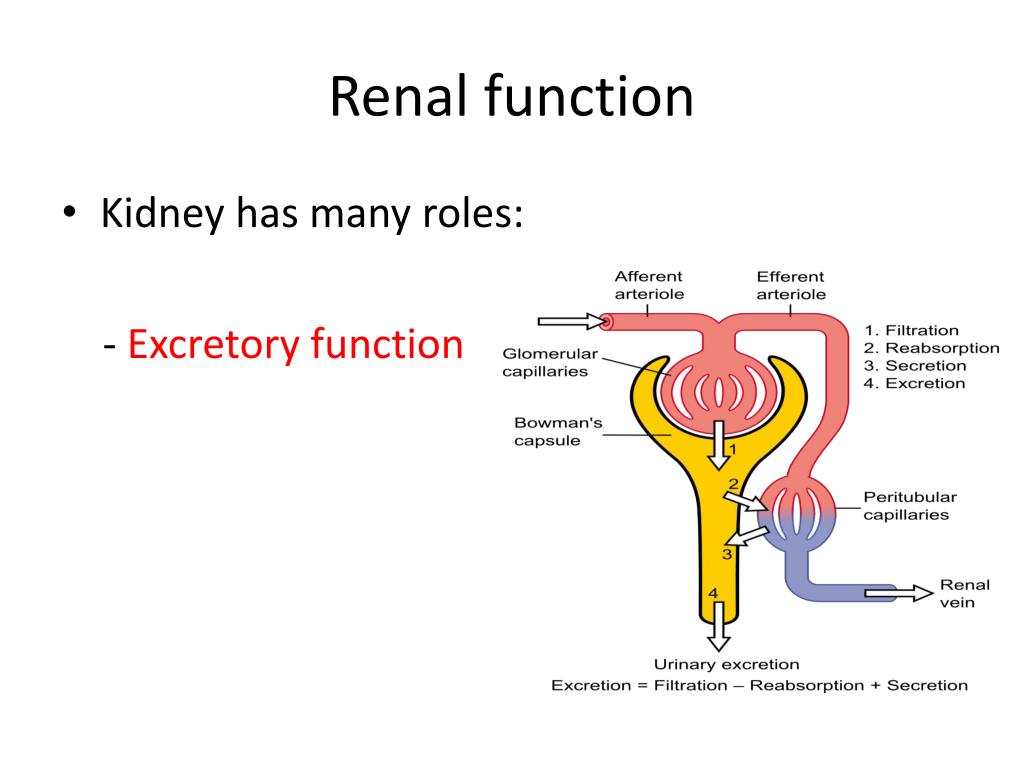 Renal function • Kidney has many roles: - Excretory function