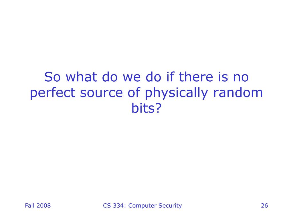 So what do we do if there is no perfect source of physically random bits? CS 334: Computer Security