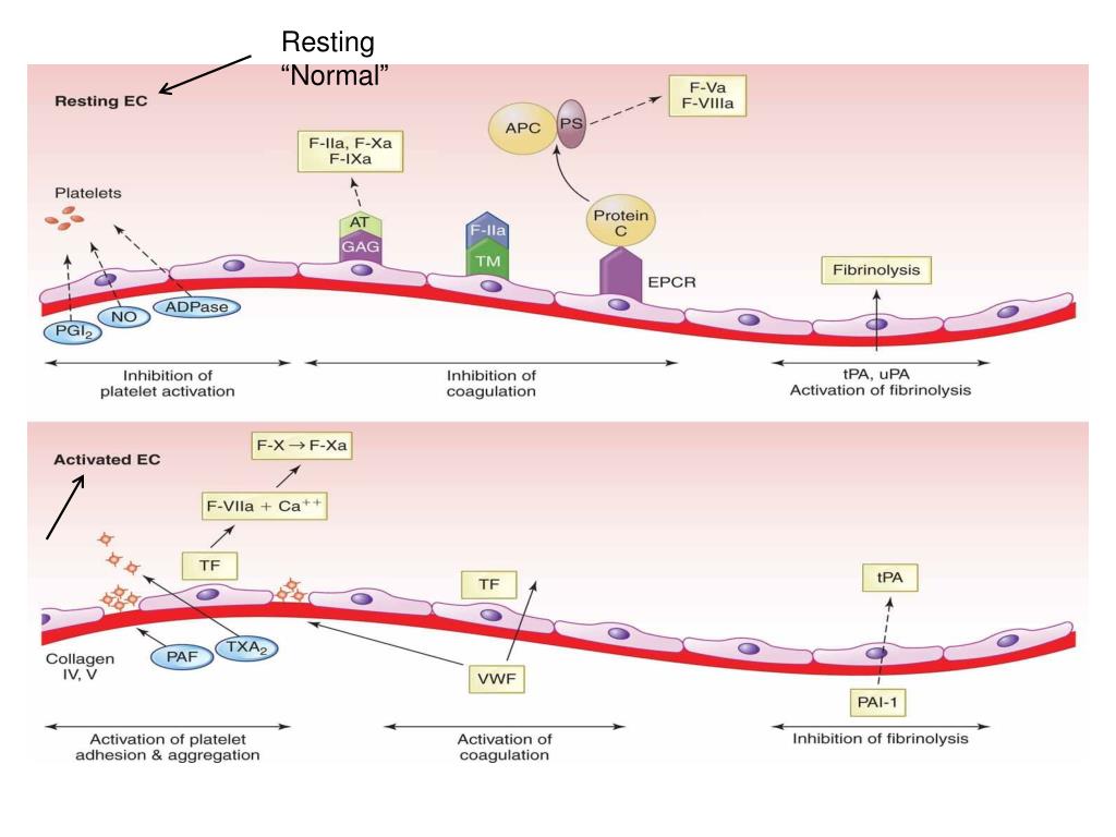 How Does the Endothelium Become Thrombogenic? • Actions • Von Willebrand’s Factor is made and released to assist the platelets in primary hemostasis • Produce tissue factor needed for secondary hemostasis • Collagen is exposed which secretes platelet activating factor which in turn activates platelets • Subendothelium promote the binding of leukocytes • Plaminogen activator inhibitor is released to inhibit fibrinolysis