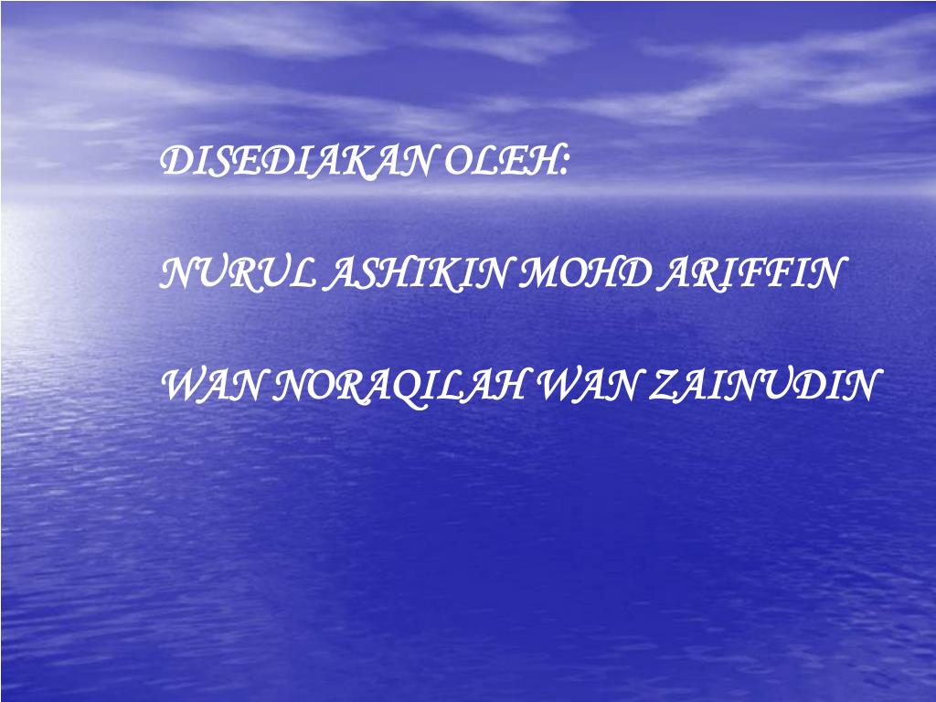 DISEDIAKAN OLEH: NURUL ASHIKIN MOHD ARIFFIN WAN NORAQILAH WAN ZAINUDIN