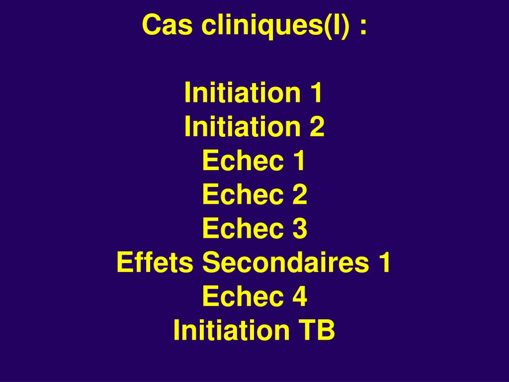 Cas cliniques(I) :Initiation 1Initiation 2Echec 1Echec 2Echec 3Effets Secondaires 1Echec 4Initiation TB
