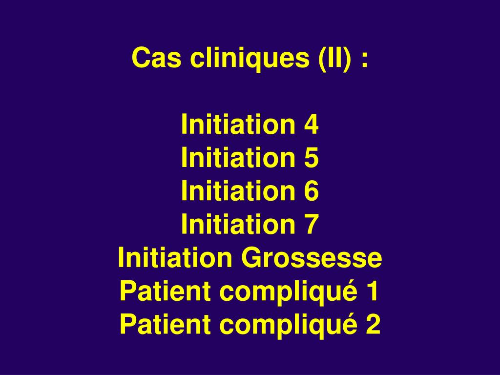 Cas cliniques (II) :Initiation 4Initiation 5Initiation 6Initiation 7Initiation GrossessePatient compliqué 1Patient compliqué 2