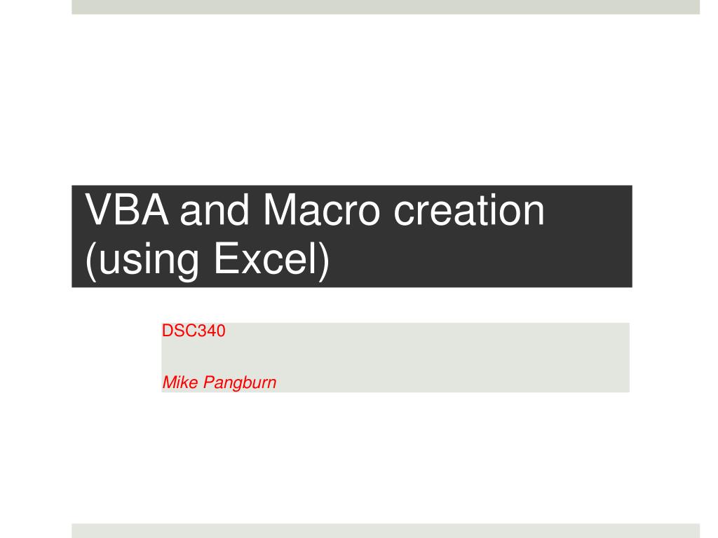 VBA and Macro creation (using Excel) DSC340 Mike Pangburn
