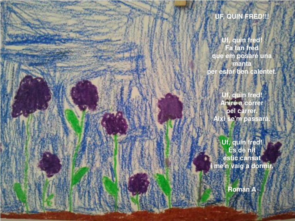 UF, QUIN FRED!!!Uf, quin fred!Fa tan fredque em posaré una mantaper estar ben calentet.Uf, quin fred!Aniré a córrerpel carrer.Així se'm passarà.Uf, quin fred!És de nitestic cansati me'n vaig a dormir.Román A