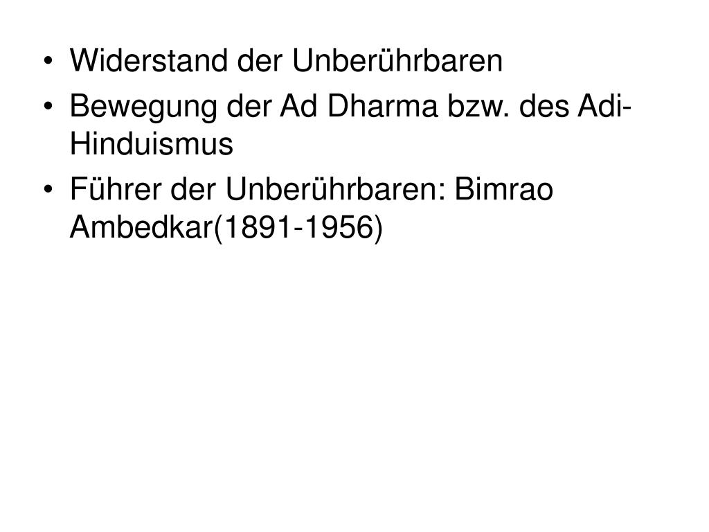 Widerstand der Unberührbaren • Bewegung der Ad Dharma bzw. des Adi-Hinduismus • Führer der Unberührbaren: Bimrao Ambedkar(1891-1956)
