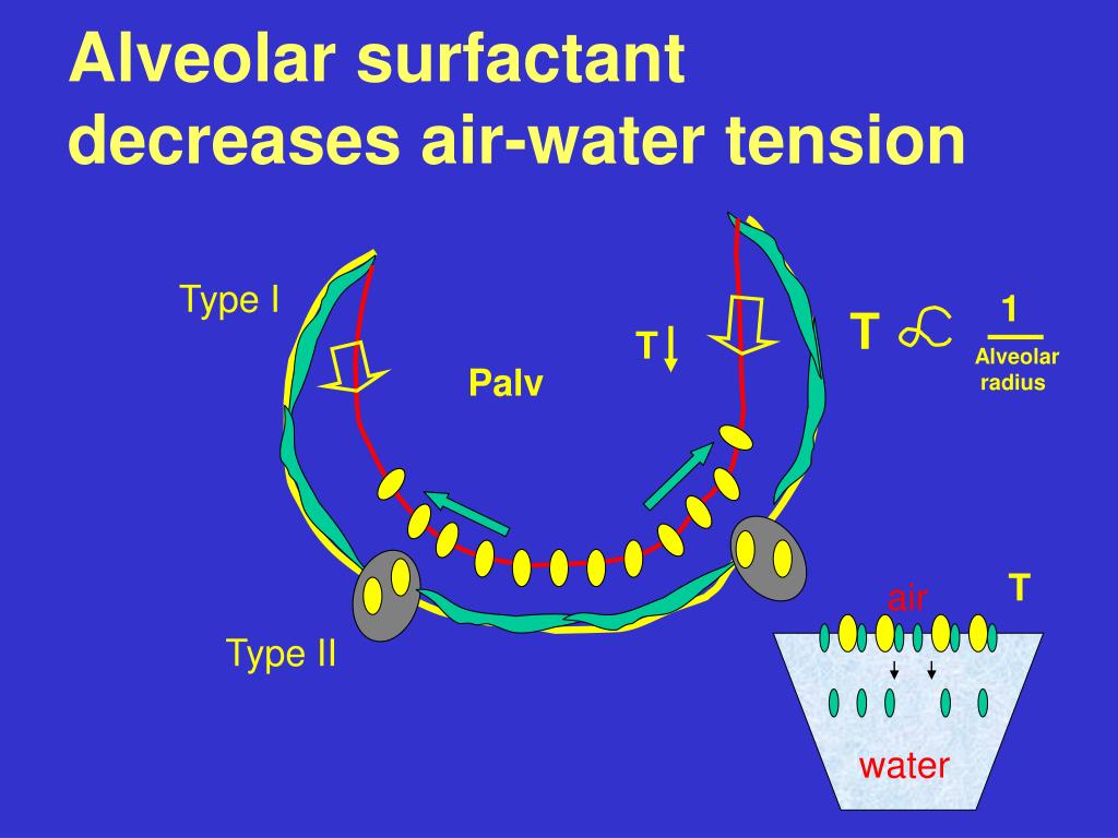 T 1 Alveolar radius Alveolar surfactant decreases air-water tension Type I T Palv T air Type II water