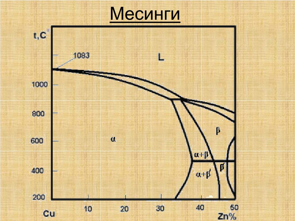 Структура на Cu-Zn сплави В лятата структура на двуфазния месинг (39-45% Zn) се наблюдават светлите кристали на a - фазата и тъмните кристали наb`- фазата