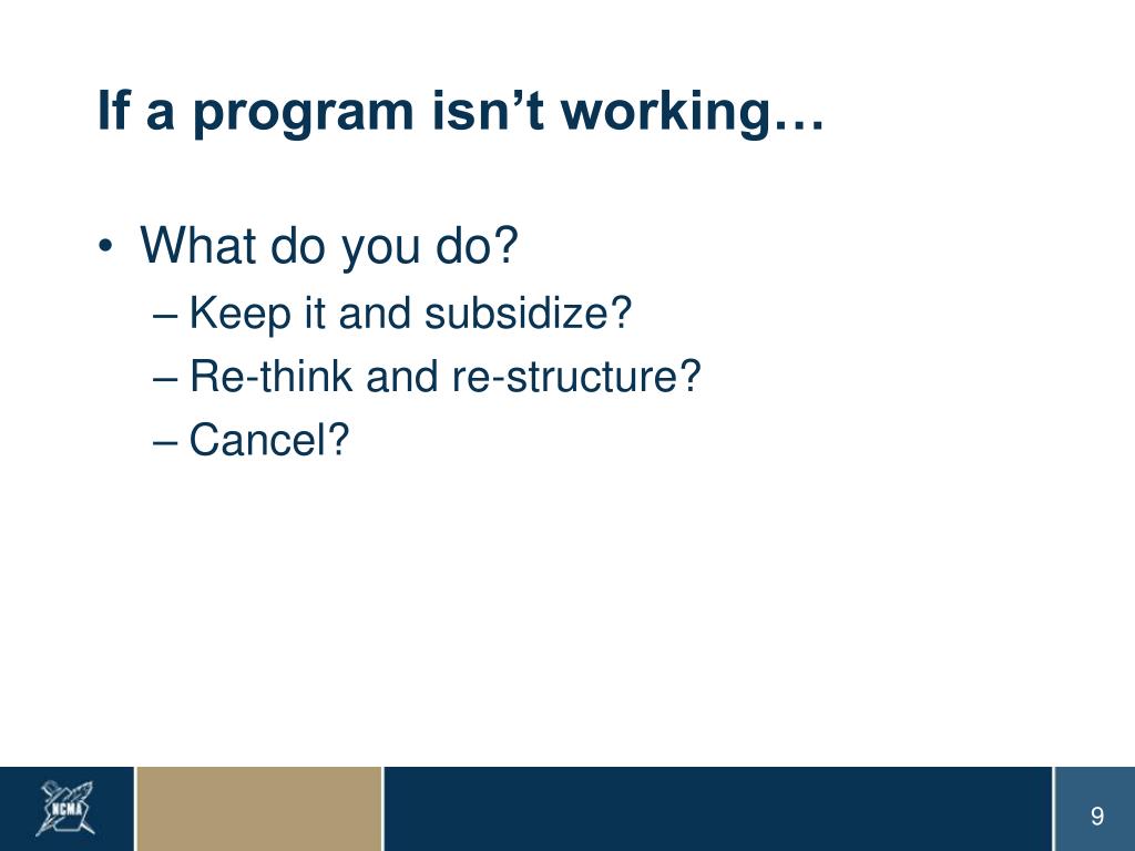 If a program isn’t working… What do you do? Keep it and subsidize? Re-think and re-structure? Cancel?