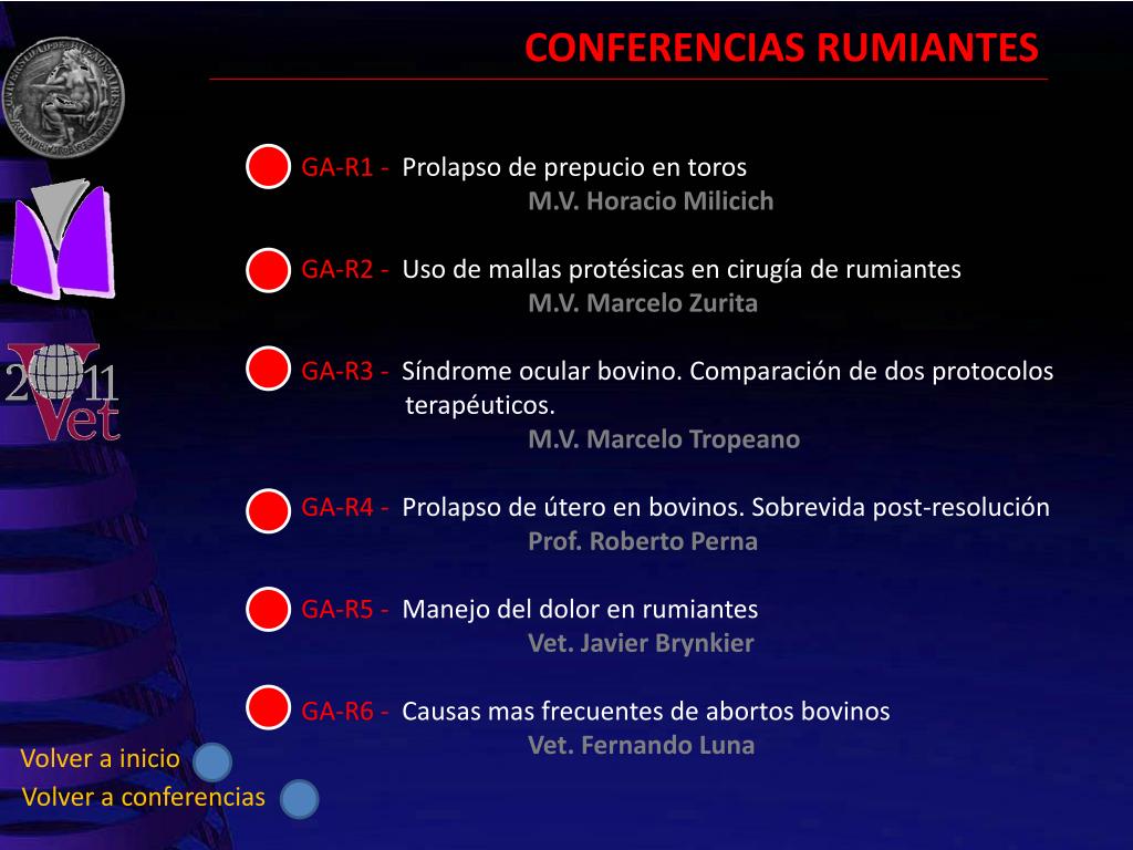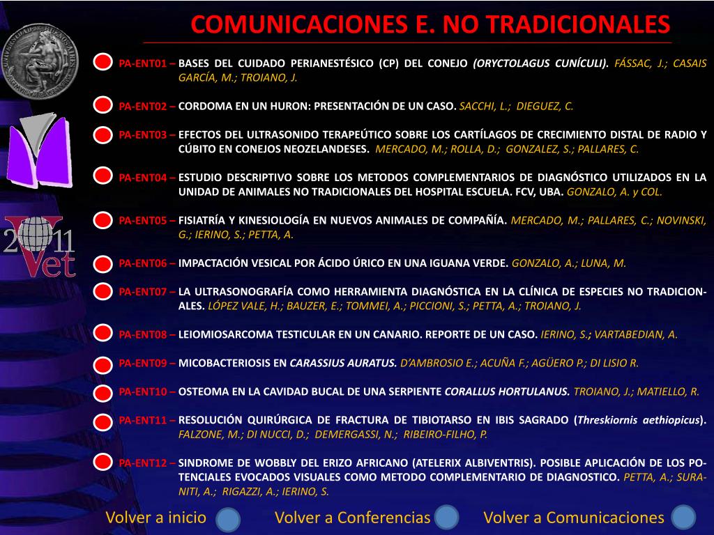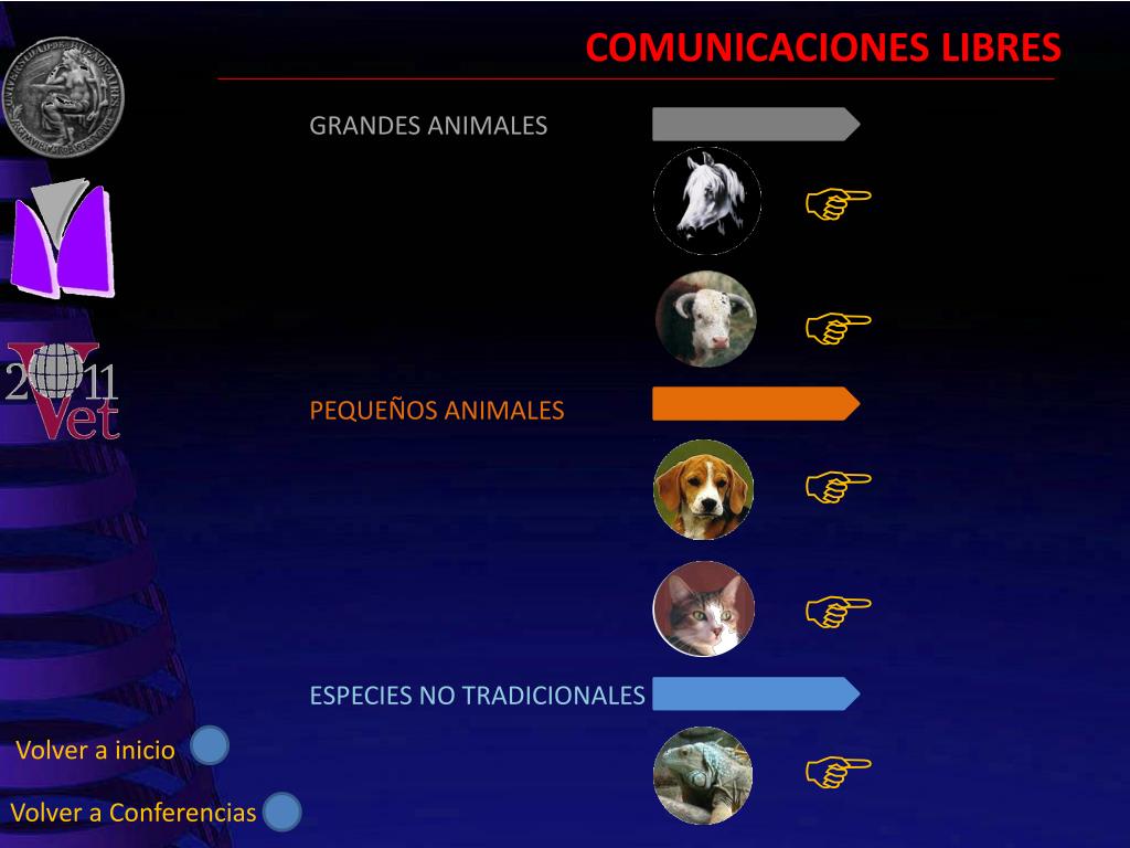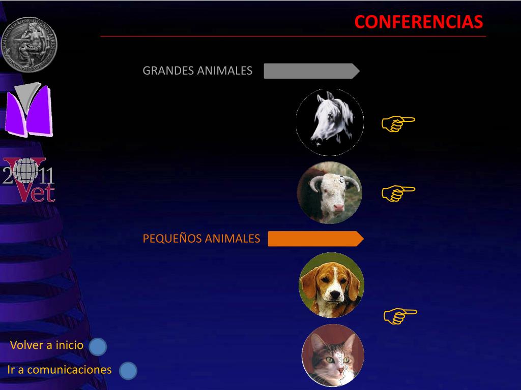 CONFERENCIAS GRANDES ANIMALES PEQUEÑOS ANIMALES Volver a inicio Ir a comunicaciones