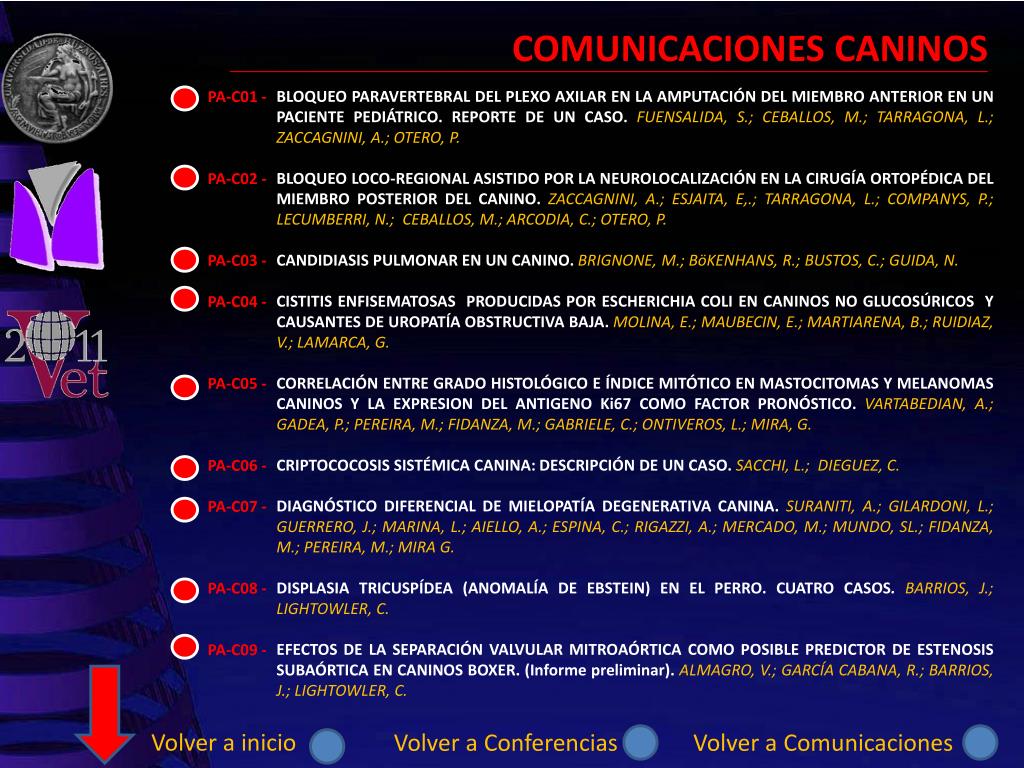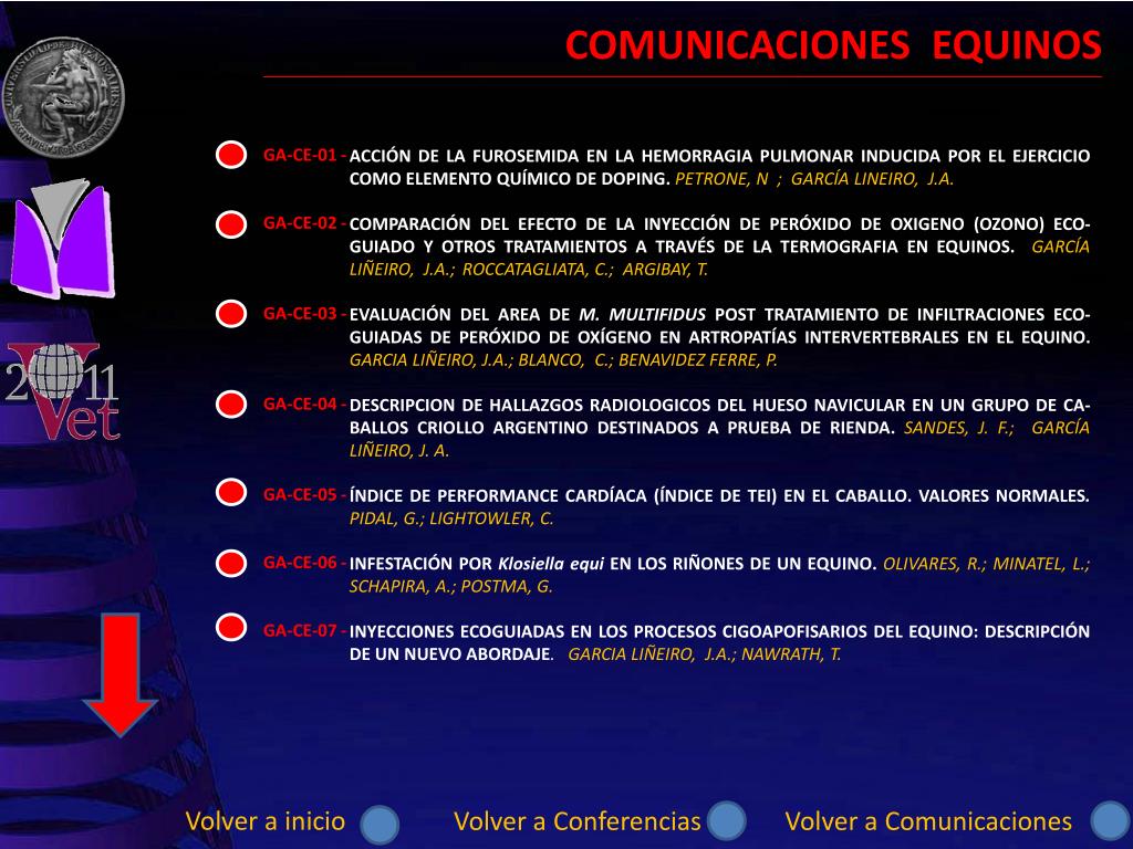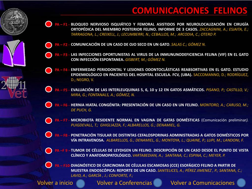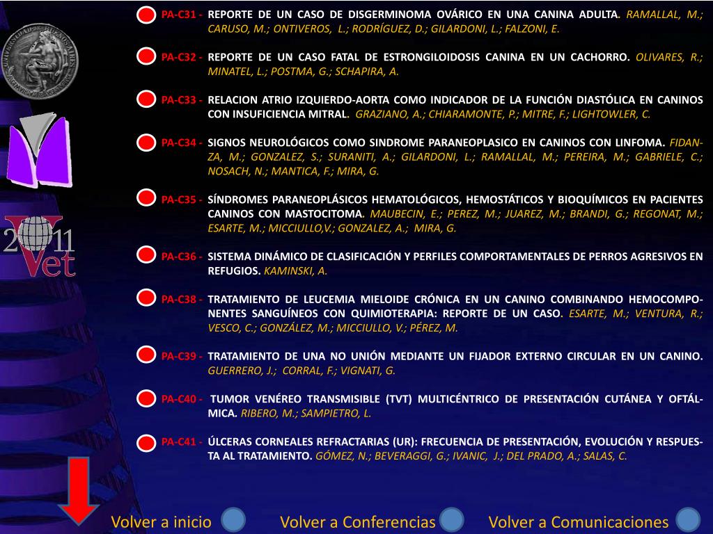 CONFERENCIAS GRANDES ANIMALES PEQUEÑOS ANIMALES Volver a inicio Ir a comunicaciones