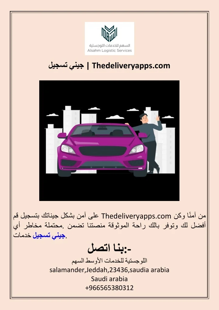 ليجست ينيج | Thedeliveryapps.com مق ليجستب كتانيج لكشب نمآ ىلع Thedeliveryapps.com نكو اننمآ نم يأ رطاخم ةلمتحم. نمضت انتصنم ةقوثوملا ةحار كلاب رفوتو كل لضفأ تامدخ ليجست ينيج. لصتا انب:- مهسلا طسولا تامدخلل ةيتسجوللا salamander,Jeddah,23436,saudia arabia Saudi arabia +966565380312