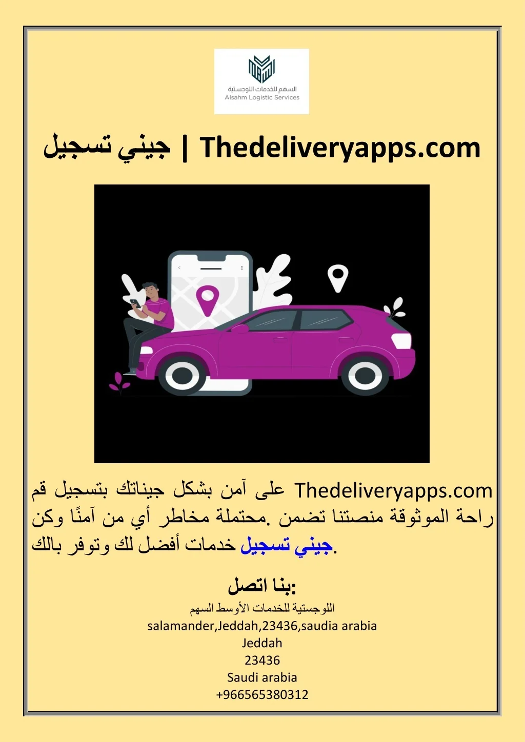 ليجست ينيج | Thedeliveryapps.com مق ليجستب كتانيج لكشب نمآ ىلع Thedeliveryapps.com نكو اننمآ نم يأ رطاخم ةلمتحم. نمضت انتصنم ةقوثوملا ةحار كلاب رفوتو كل لضفأ تامدخ ليجست ينيج. لصتا انب: مهسلا طسولا تامدخلل ةيتسجوللا salamander,Jeddah,23436,saudia arabia Jeddah 23436 Saudi arabia +966565380312